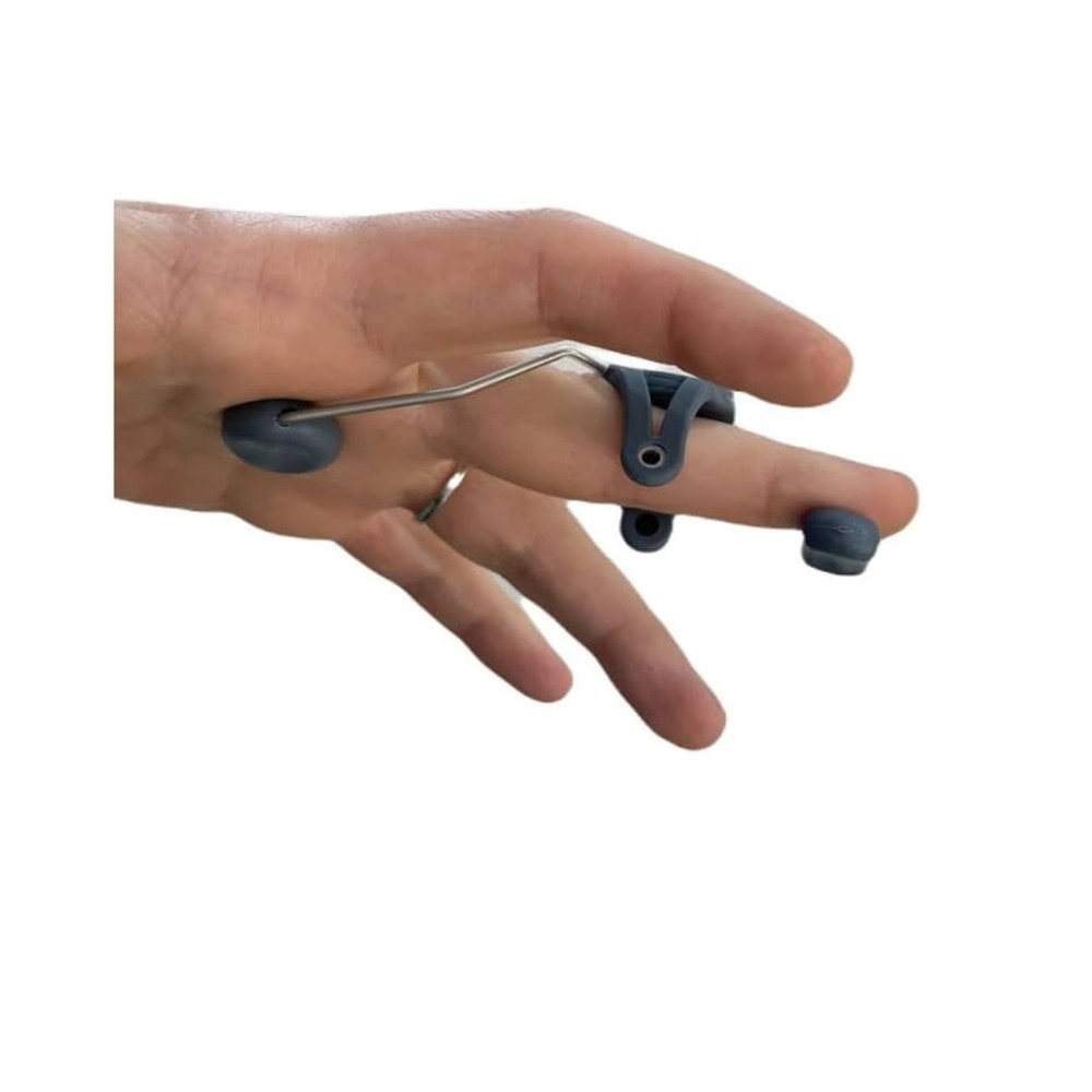 Férula dinámica extensora de dedo. Férula para la extensión de la articulación interfalángica proximal. Muy cómoda de utilizar gracias a su almohadilla ergonómica y resistente. Permite aumentar o reducir la tensión doblando con cuidado el resorte. Indicada para lesiones en que se necesite la asistencia del tendón flexor, restableciendo el equilibrio muscular y evitando la deformación.